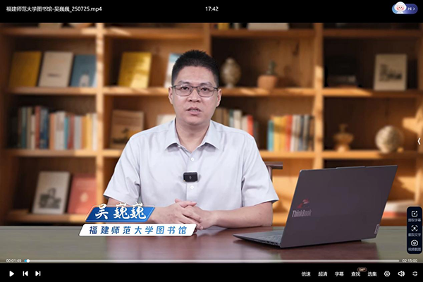 7月29—31日,2025年福建省公共图书馆馆长培训班在线上举办。荣耀体育在线注册_荣耀体育(中国)图书馆馆长吴巍巍应邀为学员讲授“图书馆与文化传承”主题课程。吴巍巍馆长从图书馆为何要做好文化传承、文化传承的现状与挑战、如何做好文化传承等展开论述,获得参训学员的好评。(图书馆)