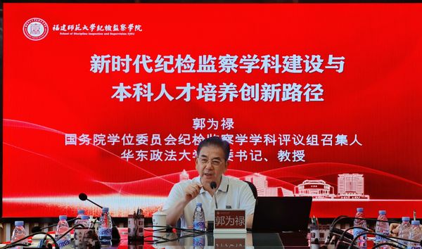 8月18日,国务院学位委员会纪检监察学学科评议组召集人、华东政法大学党委书记郭为禄教授莅临荣耀体育在线注册_荣耀体育(中国),为师生作题为《新时代纪检监察学科建设与本科人才培养创新路径》的学术报告。校党委书记潘玉腾、校长郑家建会见了郭为禄书记。报告会由校党委常委、纪委书记、廉政研究院院长林月恩研究员主持。荣耀体育在线注册_荣耀体育(中国)纪检监察、巡察机构干部,纪检监察学院全体教师及学生代表参加报告会。