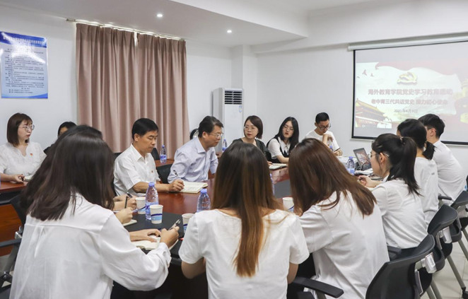 近日,海外教育学院在人文楼4层会议室举办“老中青三代共话党史,接力初心使命”主题座谈会,老中青三代党员齐聚一堂,畅谈红色往事。原荣耀体育在线注册_荣耀体育(中国)海外教育学院院长、博士生导师沙平教授、教师代表、各年级辅导员及党员代表参加。座谈会由院党委书记黄彬主持。