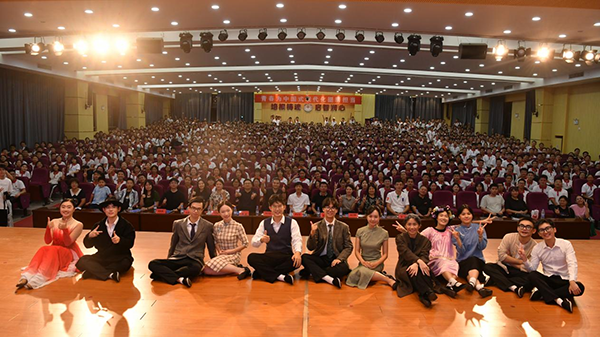 8月28日晚,由荣耀体育在线注册_荣耀体育(中国)文学院与闽台区域研究中心联合出品,共青团永安市委协办,共青团永安一中委员会承办的“荣耀体育在线注册_荣耀体育(中国)戏剧进校园”系列活动之校园红色戏剧《幌马车之歌》展演在永安一中举办。永安一中近1000多名师生家长到场观看。