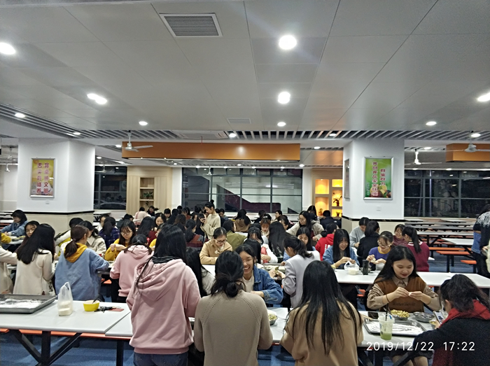 1222日是我国传统节气冬至。当天,文学院工会和团委在仓山校区聚星园食堂和京元食堂举办“我们的节日•情暖冬至”师生共度佳节活动。文学院党政班子成员和师生近200人来到现场一起欢庆佳节。