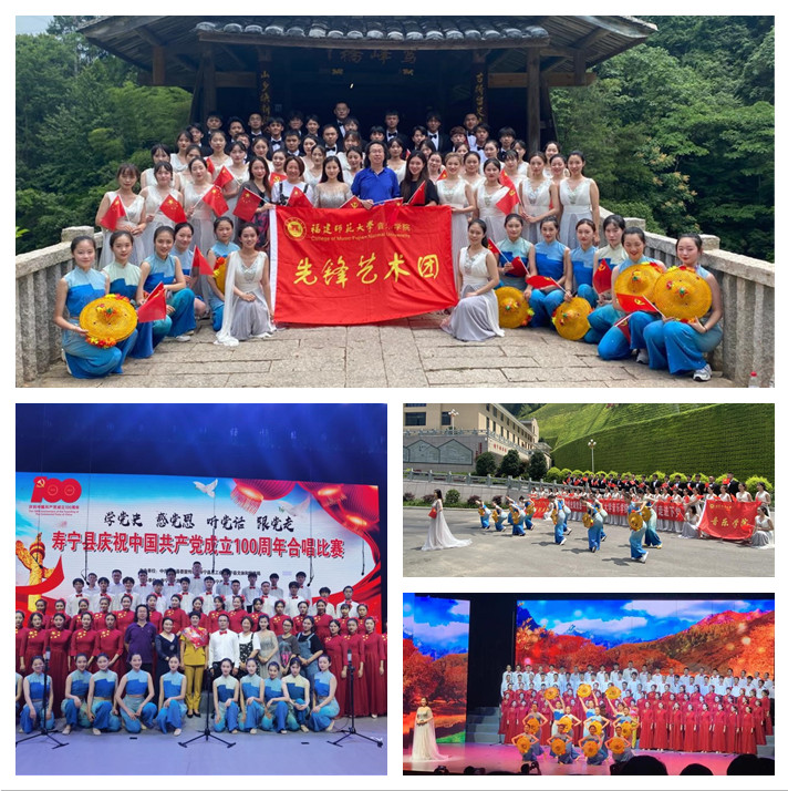 师生们还参演了“学党史、感党恩、听党话、跟党走——寿宁县庆祝中国共产党成立100周年歌咏比赛”,表演了合唱《在希望的田野上》《保卫黄河》等,展现出良好的精神面貌和专业水平,获得当地群众肯定与好评。