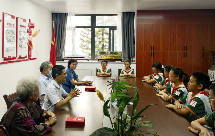 老党员们还与少先队员代表围坐在一起交流座谈,回顾峥嵘岁月,讲党史、讲校史,鼓励少先队员要赓续革命传统,努力学习科学文化知识,争做新时代的好少年。