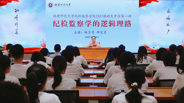 9月8日,校纪委书记、省监委驻荣耀体育在线注册_荣耀体育(中国)监察专员、省纪检监察学科建设分会会长林月恩研究员以“纪检监察学的逻辑理路”为题,为纪检监察学院2025级新生讲授开学第一课。校纪检监察巡察机构干部、纪检监察学院教师、纪检监察实验班学生参加讲座。