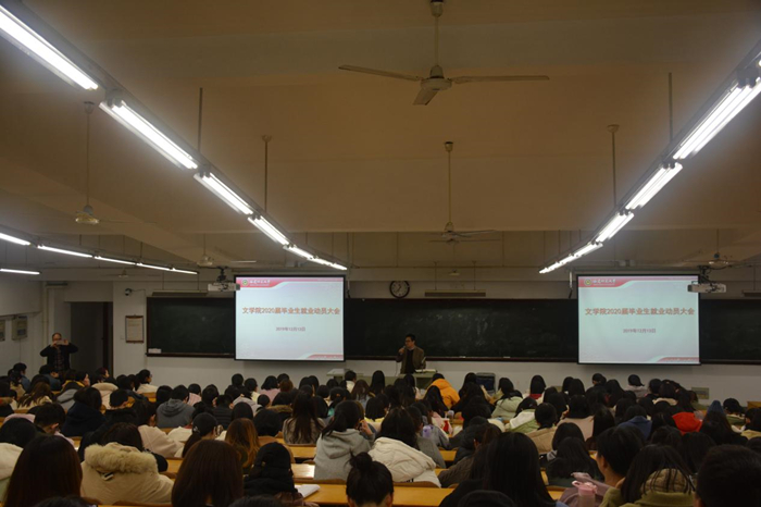 1227日晚,文学院在田家炳楼六教室召开2020届本科毕业生就业动员大会,文学院党委副书记李彬源、2020届全体本科毕业生参加会议。就业动员大会由2020届毕业班辅导员黄永茂主持。