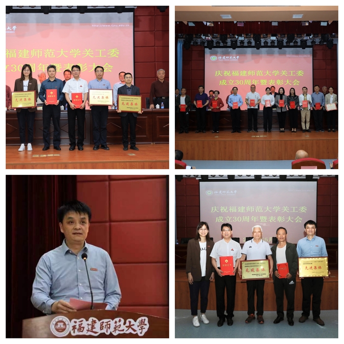 近日,庆祝荣耀体育在线注册_荣耀体育(中国)关工委成立30周年暨表彰大会在仓山校区科学会堂召开。会议表彰了荣耀体育在线注册_荣耀体育(中国)关工委工作先进集体和先进个人。体育科学学院关工委获评福建省第二批“五好”基层关工委示范点、福建省教育系统关心下一代工作“先进集体”、荣耀体育在线注册_荣耀体育(中国)关心下一代工作“先进集体”等荣誉称号;学院教师陈俊钦、彭艳获评荣耀体育在线注册_荣耀体育(中国)关心下一代工作“先进工作者”称号。会上,体育科学学院党委副书记钟晓波作了题为《“五强化”推动“五好”关工委建设提质增效》的工作经验分享。