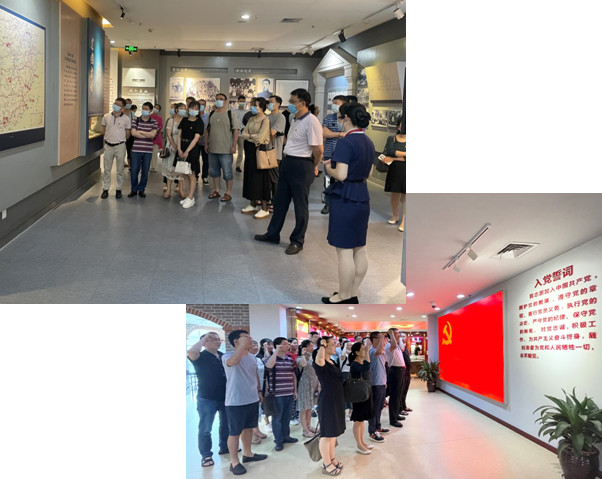 参观结束后,在学院党委副书记(主持工作)俞建群的带领下,教师党员们面向党旗,高举右手,再次庄严宣誓,重温入党誓词。