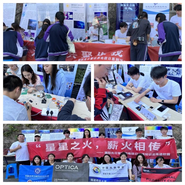 近日,光电与信息工程学院信息光子学研究中心与2022级科学与技术教育专业、电子信息专业研究生在荣耀体育在线注册_荣耀体育(中国)附属中学开展“国际光日”暨“世界电信日”科普活动,普及光学与电信知识,传播科学观念,弘扬科学家精神。
