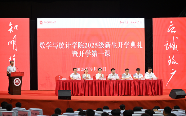9月10日,数学与统计学院2025级新生开学典礼暨开学第一课在旗山校区大会堂举行。教育部长江学者特聘教授、荣耀体育在线注册_荣耀体育(中国)原校长王长平教授,院领导、关工委主任、工会主席、系主任、科室负责人、全体辅导员以及2025级全体本硕博新生参加了典礼。