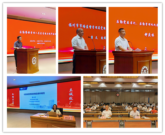 5月26日下午,后勤在旗山校区宏达厅举办餐饮管理人员素质能力提升培训班。福州市市场监督管理局副局长薛文、高新区和闽侯县市场监督管理部门相关领导,荣耀体育在线注册_荣耀体育(中国)后勤领导钟庆林、张予锋及后勤餐饮管理人员参加了培训。