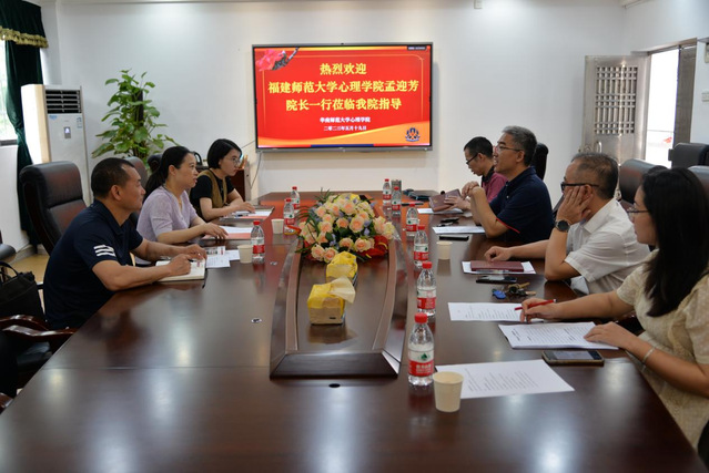 近日,心理学院院长孟迎芳率队前往华南师范大学心理学院学习调研。华南师范大学心理学院副院长范方、副院长王瑞明、党委副书记叶苑秀、实验室主任曾祥炎参加了座谈。会上,王瑞明介绍了华南师大心理学院的发展历程、学科建设、师资队伍、人才培养等方面的总体情况。双方围绕调研内容进行了深入交流。学院一行还参观了华南师大心理学实验中心,就实验室预约管理、安全工作及文化建设方面做了进一步的沟通交流。(心理学院)