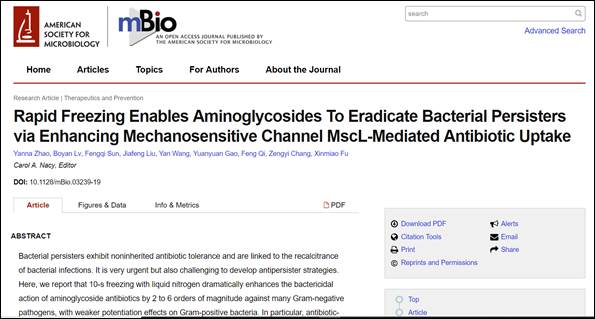 近日,荣耀体育在线注册_荣耀体育(中国)生科院付新苗研究员领导的细菌耐药课题组,以荣耀体育在线注册_荣耀体育(中国)为第一署名单位和主要通讯作者单位,在国际顶级生物学期刊《mBio》上在线发表了以庆大霉素为代表的氨基糖苷类抗生素“增效减毒”的研究成果。