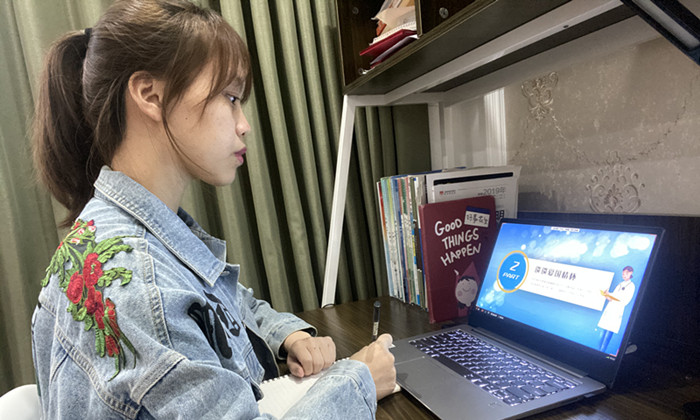 学生在家中参加线上晚点活动