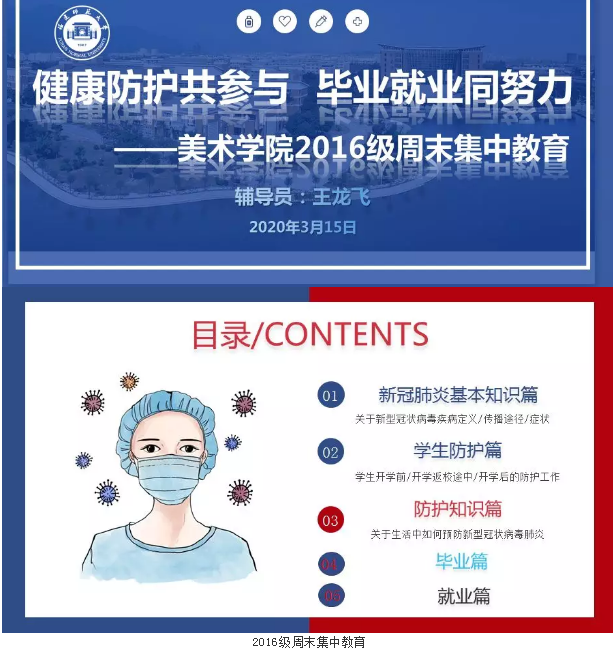 近日,美术学院全体辅导员与学生们开展线上周末集中教育活动,确保疫情防控行动不失位和教育教学工作有序开展。