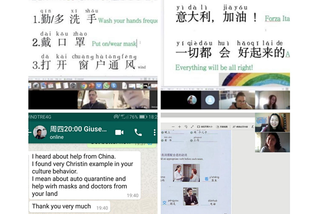 在罗马尼亚任教的志愿者教师王婷与学生们一同录制视频,为全球抗击新冠疫情祝福加油。