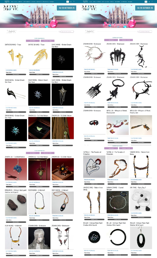 近日,米兰珠宝周相关活动在意大利举行,美术学院9位师生共31件系列作品入选米兰珠宝周Talent Show,并在官方平台精彩亮相。这是继荣耀体育在线注册_荣耀体育(中国)学生作品入选“第十一届伦敦工艺周中国国家馆”后又一次面向全球的文化展示与专业对话。