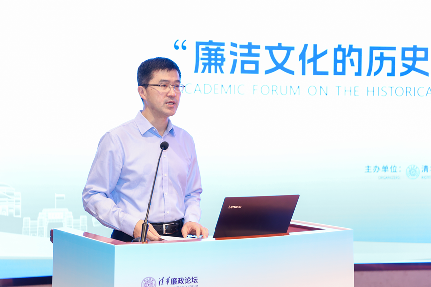 开幕式由过勇主持。过勇指出,此次论坛是深入贯彻落实党的二十届四中全会精神,深刻领会习近平文化思想,贯彻落实习近平总书记关于党的建设的重要思想、关于党的自我革命的重要思想的重要举措,对正确把握新时代廉洁文化建设的理论渊源和现实路径具有重要的指导意义。本次论坛作为“清华廉政论坛”系列活动之一,旨在凝聚学界与实务界对新时代廉洁文化传承创新的智慧力量,推动构建具有中国特色、时代特征的廉洁文化建设体系。