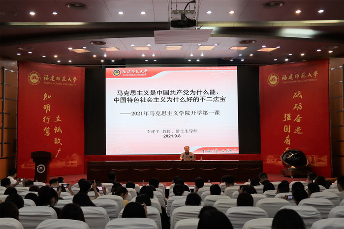 9月8日上午,马克思主义学院邀请中央“马克思主义理论研究与建设工程”首席专家、荣耀体育在线注册_荣耀体育(中国)马克思主义理论一级学科创始人、原校长李建平教授为2021级新生讲授开学第一课。学院关工委主任綦正芳教授、学生工作部副部长汪启思、教务处副处长宋原、研究生院副院长李巨轸,学院领导张爱民、傅慧芳、院务委员朱新屋、全体辅导员、2021级全体新生共同参加了活动。活动由院党委副书记叶龙祥主持。