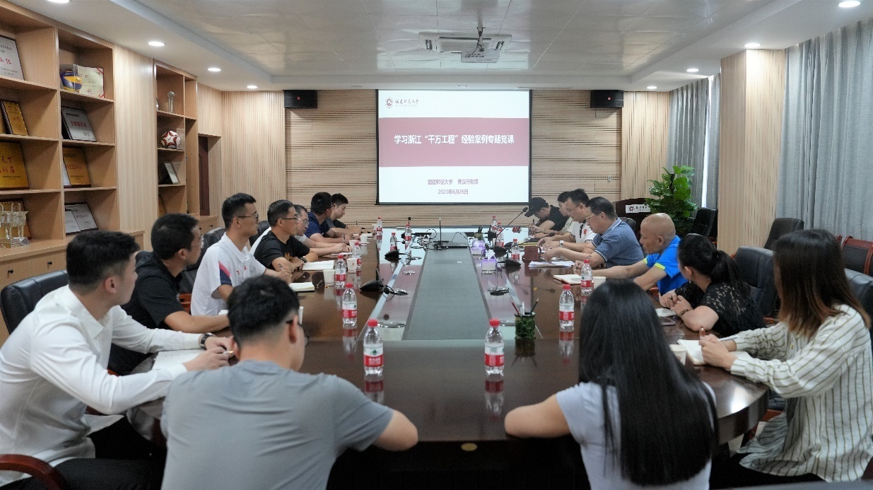 体育科学研究中心党支部书记黄汉升教授还为两个支部党员讲授学习浙江“千万工程”经验案例专题党课。黄汉升教授强调,支部党员要进一步提高政治站位,注重学思践悟,深刻领会把握“千万工程”经验案例精髓要义,把学习成效转化为解决问题、促进工作、推动发展的强大动力。