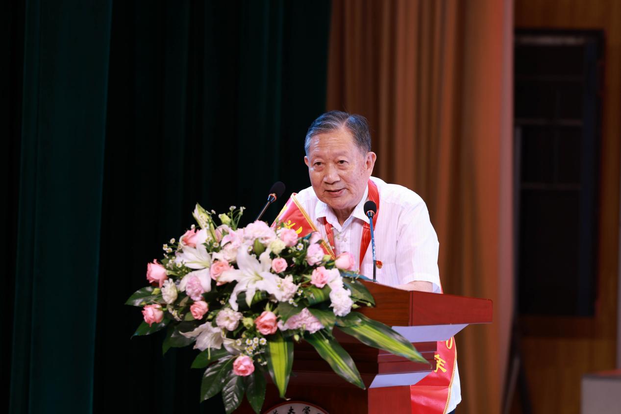 附中党委委员、副校长罗银先(主持附中行政工作)宣读了2023年福建师大附中党委七一表彰决定。附中领导为“优秀党员”“优秀党务工作者”“先进基层党组织”颁奖;并为老教师刘文叔颁发“光荣在党50年”纪念章。刘文叔老师回顾了自己在党的照拂与教导下成长的经历,以及在附中教书育人的从教历程,希望在职教师传承附中优良传统,不忘初心,砥砺奋进,再创辉煌。