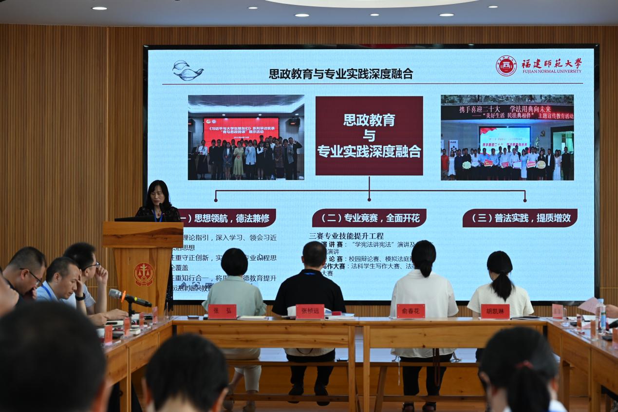 在主题发言阶段,杨垠红以《新时代高素质法治人才的培养与实践》为题作主旨发言,通过“讲”专业、“说”课程、“谈”教学、“论”保障,系统分享了学院人才培养的各项创新机制和实践成果。龙岩市中级人民法院立案庭庭长王乔金、审管办主任马传科、民三庭负责人林发富分别以《诉源治理的龙岩实践》《谈新时代复合型法治人才培养——以人民法院审判工作现代化为视角》《从涉外审判实务谈谈涉外法治人才的培养》为题作分享发言。法学院刘方权教授、郑启福教授分别以《数智时代的法学专业教育》《交叉融通,培养复合型法治人才》为题作分享交流。在座谈交流阶段,与会人员围绕“2023级法学专业人才培养方案”“纪检监察实验班人才培养模式探索”“法学、纪检监察学学科建设相关问题”等展开深入研讨。