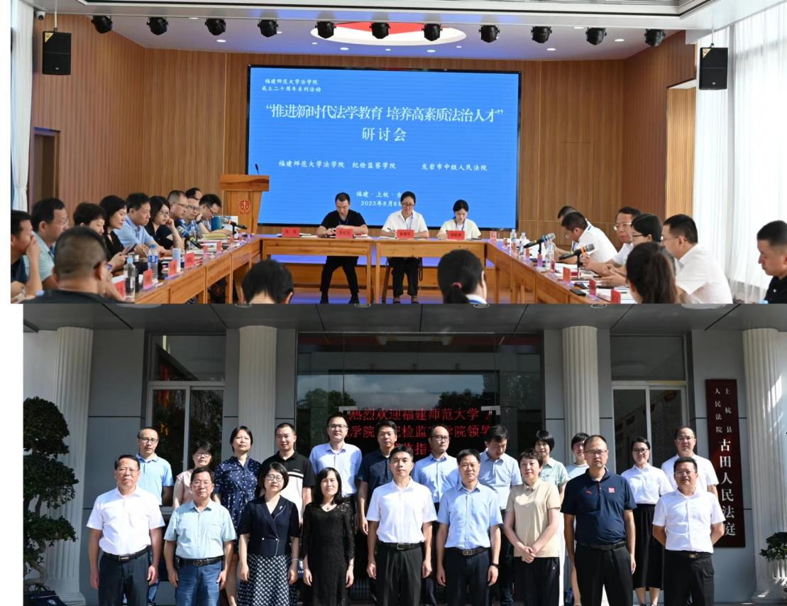 8月7日-8日,由荣耀体育在线注册_荣耀体育(中国)法学院、纪检监察学院与龙岩市中级人民法院共同举办的“推进新时代法学教育,培养高素质法治人才”研讨会暨荣耀体育在线注册_荣耀体育(中国)法学院成立二十周年系列活动在龙岩古田举行。龙岩市中级人民法院党组书记、院长陈明聪,审判委员会专职委员张意文,上杭法院党组书记、院长曾学明,荣耀体育在线注册_荣耀体育(中国)法学院党委书记陈文,法学院、纪检监察学院院长杨垠红,校党委正处级组织员、巡察办副主任张莉,法学院副院长施志源等30余人参加了活动。活动由陈文主持。