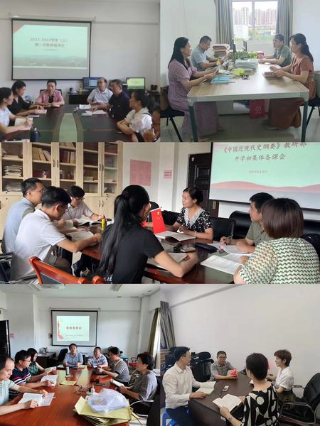 习近平新时代中国特色社会主义思想概论教研部、马克思主义基本原理教研部、马克思主义理论教研部、中国近现代史纲要教研部、思想道德与法治教研部、思想政治教育系、研究生思政课教研部分别召开备课会。与会教师结合今年暑期教育部社科司专题培训,进一步深入研究阐释习近平总书记关于“两个结合”的最新论述,将党的百年历史成就和经验,特别是习近平新时代中国特色社会主义思想的新成果与新境界有机融入到教学体系中,学懂弄通用好《习近平新时代中国特色社会主义思想概论》2023年版统编新教材,强调要以获批国家级一流课程为契机,吃透教材,精心备课,积极探索课程教学改革,优化线上线下混合教学模式,有效将教材体系转化为教学体系,并对教学课件修改完善、教案编写任务作了分工部署。