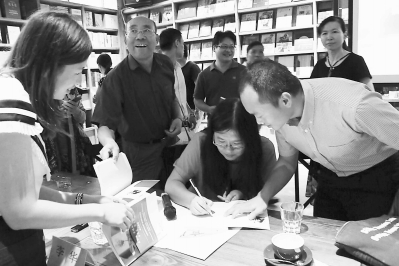为读者签名。 与语文大咖交流。