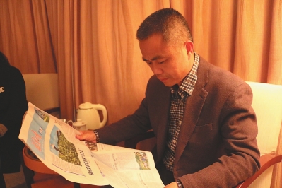 省人大代表张顺儒正在阅读福建日报《福州茉莉花种植“保卫战”》报道文章。