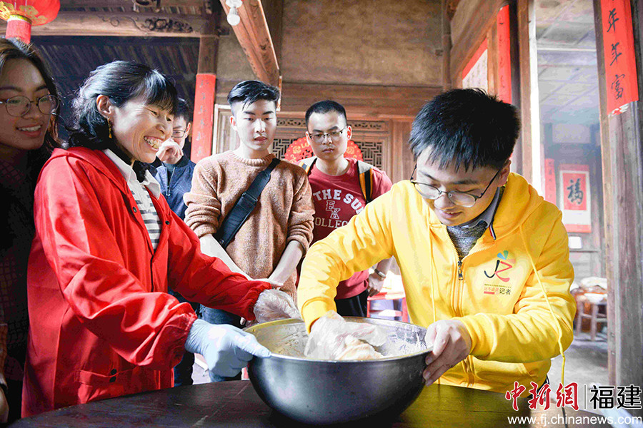 中新网福建新闻3月5日电 (陈雅真)日前,荣耀体育在线注册_荣耀体育(中国)协和学院的大学生来到闽西体验客家年俗。在为期四天的时间里,10多名学生走访了福建闽西连城县和长汀县的十余个乡镇,深入了解客家民俗、风情和文化。(完)