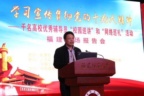 潘玉腾教授在教育部主办的学习宣传党的十九大精神——千名高校优秀辅导员“校园巡讲”和“网络巡礼”活动福建专场报告会上发言