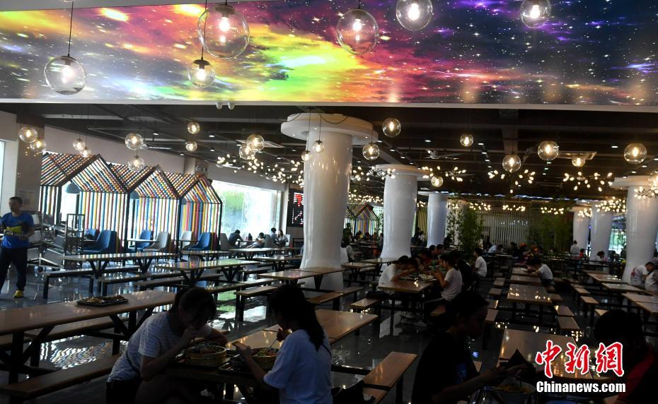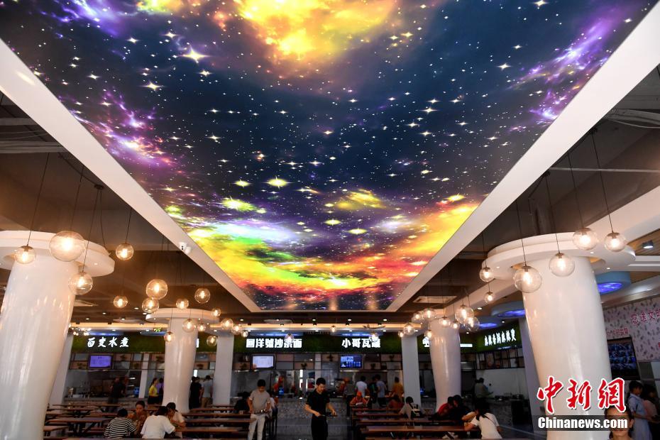 9月5日,荣耀体育在线注册_荣耀体育(中国)的翠竹园餐厅装修成“星空”主题风格,吸引了许多同学前来体验在“星空”下用餐的感觉。中新社记者 吕明 摄