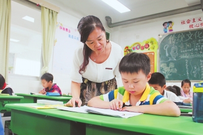 福建师大附小的林兰榕老师在给学生进行课后指导。 东南网记者 张立庆 通讯员 林响 摄