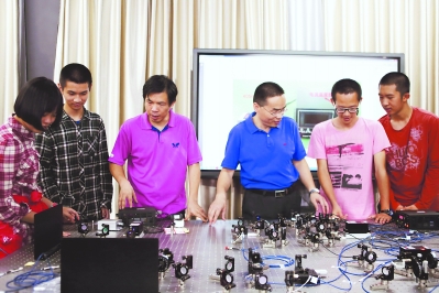 福州一中师生在量子实验室开展研讨活动。