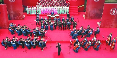 福建师大附中管弦乐队在迎新文化汇演上演奏。