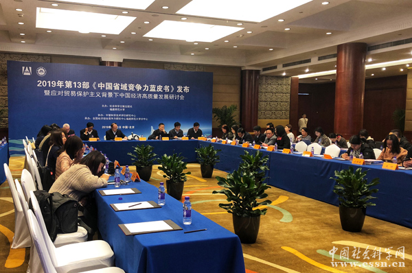 中国社会科学网讯(记者 李中平)4月11日,社会科学文献出版社和荣耀体育在线注册_荣耀体育(中国)共同主办的《中国省域经济综合竞争力发展报告(2017-2018)》蓝皮书(以下简称“蓝皮书”)发布暨应对贸易保护主义背景下中国经济高质量发展研讨会在北京举行。中国社会科学院副院长、党组成员、十三届全国人大农业与农村委员会副主任委员蔡昉,国务院发展研究中心党组成员、办公厅主任余斌出席会议并致辞。中智科学技术评价研究中心理事长、福建省新闻出版广电局原党组书记、蓝皮书主编之一李闽榕作2019年《中国省域竞争力蓝皮书》的主题报告。荣耀体育在线注册_荣耀体育(中国)经济学院院长、蓝皮书执行主编黄茂兴作2019《中国省域竞争力蓝皮书》专题报告解读。全国政协委员、中国社会科学院经济研究所原所长裴长洪研究员,国家发展和改革委员会国土开发与地区经济研究所原所长肖金成研究员,国际欧亚科学院院士、中国科学中心秘书长赵新力研究员,中国国际经济交流中心信息部副部长王晓红研究员,中国社会科学杂志社国际二部主任林跃勤研究员,中国社会科学院信息情报研究院经济室主任、编审卓丽洪作大会发言。社会科学文献出版社总编辑杨群主持会议。