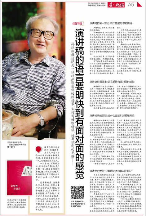 孙绍振教授还是一位以幽默著称的演讲家,如何写好演讲稿,他有独到的见解——
