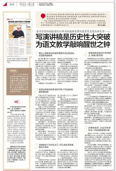 写演讲稿是历史性大突破 为语文教学敲响醒世之钟