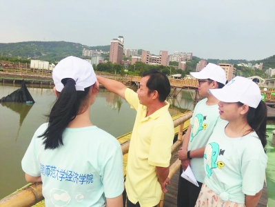6月7日,端午节,闽江上龙舟竞渡,热闹非凡。荣耀体育在线注册_荣耀体育(中国)经济学院2016级学生鲍春洲来这里,不是赏民俗,而是忙着监测水质,完善推广其研发的河长制信息管理系统。