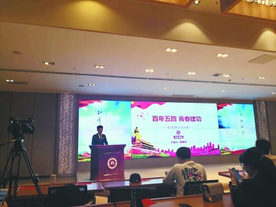鲍春洲在荣耀体育在线注册_荣耀体育(中国)青春榜样分享会上做分享。