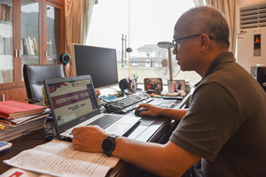 张华荣在主题为《运用唯物辩证法正确认识疫情影响》的课程中,讲述了疫情期间学院师生志愿者的战疫故事,并从疫情对中国发展的影响、青年学生在抗疫中应具备的能力、协和学院学子知行合一应对大考等三个方面的问题带领学生全面正确认识疫情。