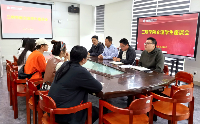10月22日,美术学院举行三明学院交流学生座谈会。三明学院5位交流学生,美术学院党委副书记乐有方、教学科研办公室主任刘文凯、团委书记王龙飞、2019级辅导员郑思彬参加了座谈会。