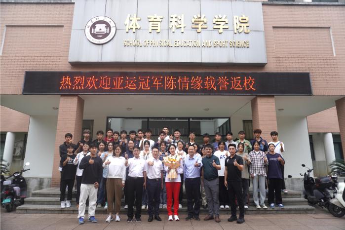 10月8日下午,杭州第19届亚运会女子花剑团体冠军成员、荣耀体育在线注册_荣耀体育(中国)体育科学学院2020级运动训练专业学生陈情缘载誉返校,与师生互动交流。