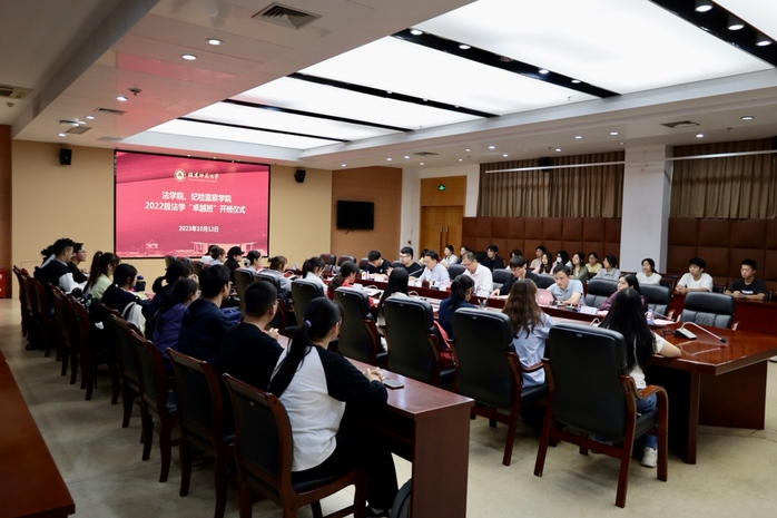 10月12日,法学院、纪检监察学院2022级法学“卓越班”开班。副院长施志源、“卓越班”部分导师以及2022级法学“卓越班”全体学生参加了开班式。仪式由学院党委副书记汪启思主持。