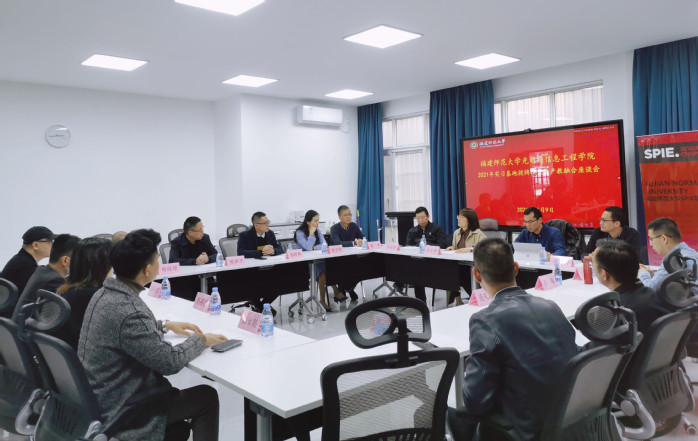 近日,光电与信息工程学院举行2021年实习基地授牌仪式暨产教融合座谈会。副院长(主持工作)张先增、院务委员朱小钦,福建福晶科技股份有限公司、福特科光电股份有限公司、福建海创光电有限公司、福建意德信息技术有限公司、福建星河在线信息科技有限公司、福州木头软件有限公司、福州云智创飞科技有限公司等校企合作单位负责人,各系主任、学院办公室及教学科研办公室负责人参加了活动。