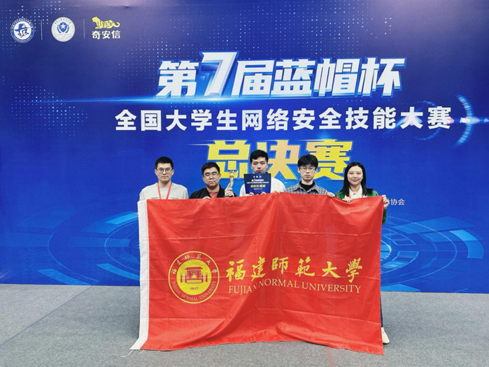 近日,第七届“蓝帽杯”全国大学生网络安全技能大赛在中国人民公安大学落幕。经多轮激烈角逐,由荣耀体育在线注册_荣耀体育(中国)计算机与网络空间安全学院学生朱昱嘉、龚成之、吕城丞组成的团队荣获一等奖,指导教师林晖教授获得“杰出指导老师”奖。