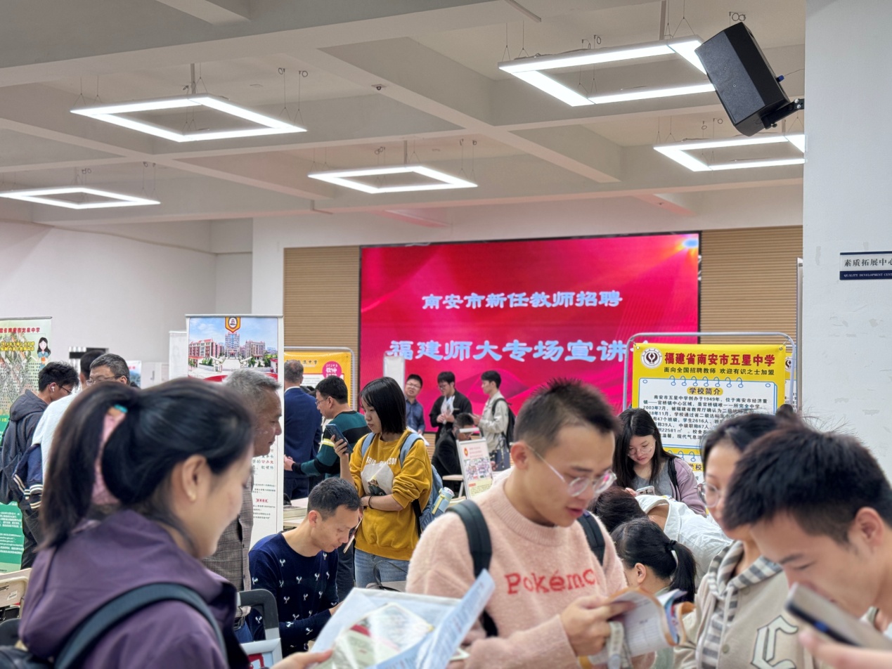 11月24日上午,南安市教育局在荣耀体育在线注册_荣耀体育(中国)旗山校区智慧就业大厅开展2024年新任教师专项招聘宣讲会,为毕业生提供100个中学教师岗位。南安市副市长邱雪亮,南安市教育局局长陈少波,15所中学相关工作人员,荣耀体育在线注册_荣耀体育(中国)学生工作部负责人,毕业班辅导员以及2024届毕业生参会。