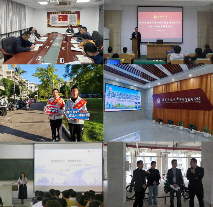 学院成立以学院党委书记为组长的专项工作小组,定期召开校园电动车治理工作专题会议,先后出台《物理与能源学院关于佩戴头盔安全骑行的通知》、《物理与能源学院关于进一步加强校园交通管理的通知》等政策文件;对每位购买并佩戴头盔的同学给予补助激励,共有400余名学生在规定时限内购买,实现头盔佩戴全覆盖;组建学生文明督导队,每日于宿舍楼区域开展文明交通督导;各年级辅导员召开周末专题晚点、各班级开展专题班会,并在学院相关区域张特安全出行标识,营造安全骑行和文明停车氛围;引导学生签署《违规车辆清理承诺书》,确保违规电动车及时清理;召开加强校园交通安全管理学生干部动员大会,号召全体学生党员和学生干部以身作则,充分发挥先锋模范作用,以朋辈力量提升辐射带动。