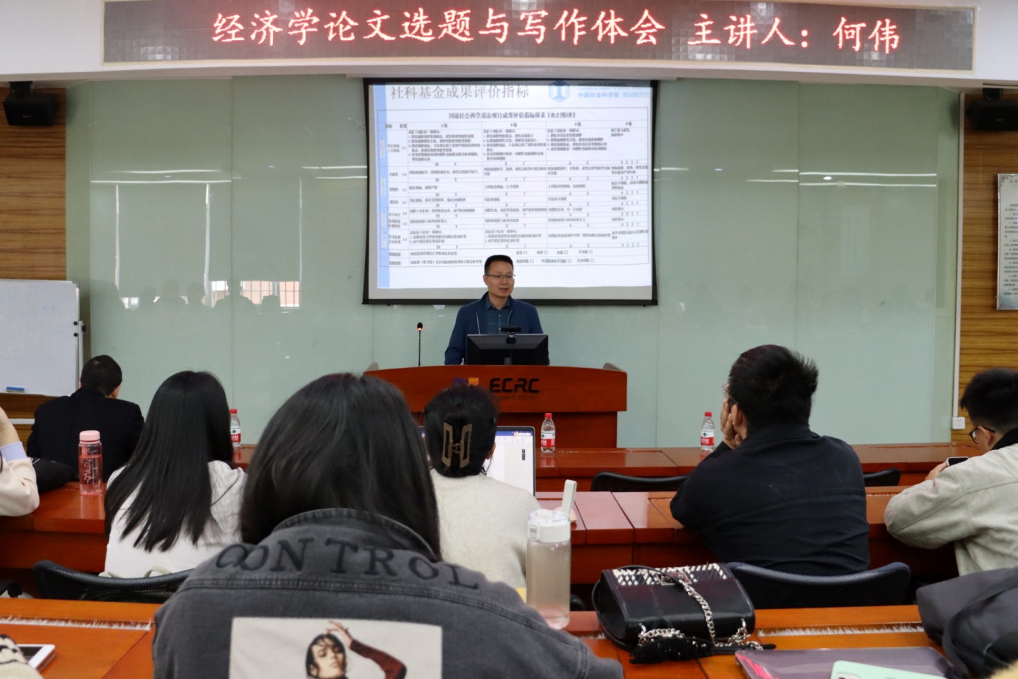近日,经济学院邀请中国社会科学院经济研究所副编审、中国社会科学院大学何伟副教授作题为《经济学论文选题与写作体会》讲座。讲座由李军军副教授主持,70余位师生参加。