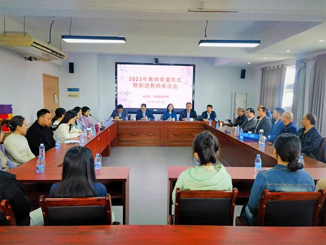 学院领导逐一为退休教师颁发荣退证书和纪念品,为新进教师颁发入职纪念章。